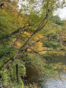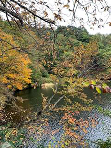 恒例の紅葉狩りに行ってきた。信州追分にある山荘をクローズする時に、毎年、若い友人が訪ねてきて、高峰高原、湯の丸高原、万座鹿沢、女神湖等をドライブしながら紅葉狩りと温泉を楽しむ事がここ何年かの行事になっている。 今年は、10月26日に松原湖だった。朝、9時過ぎに山荘を出て松原湖に向かった。追分からは佐久市内を抜け、五稜郭(函館の五稜郭とここに2つだけある)のある龍岡城の近くの国道を通り約40分の距離だ。松原湖は、南佐久郡小海町にある湖で、887年の仁和地震により天狗岳山体が崩壊し大月川がせき止められてできた湖である。 10時過ぎに松原湖に着いた。松原湖には湖畔を1周するハイキングロードがあるので、まずは、ゆっくりと1周した。湖の北東側に古びた松原諏方神社下社があった。湖岸近くには「白山宮」があり、棟札には古くから「歯の神様」として信仰されてきたと書かれていた。松原湖には神社が多いように感じたので、山荘に戻り調べてみると、松原諏方神社は上社・下社に別れ、武田信玄の崇敬が厚く、何度も信玄直筆の祈願文が届いており、信玄は祈願し出陣したらしい。 今年は気温が高かったので紅葉は遅れているとの情報を追分の友人が教えてくれていたが、松原湖も紅葉には少し早かったようだ。しかし、湖畔の北側のハイキングロードは既に見ごろのような色合いだった。黄色と赤色と緑色の木の葉が、良い具合にグラデーションした風景は、「紅葉狩り」の一局なのかもしれないなどと思った。 |
